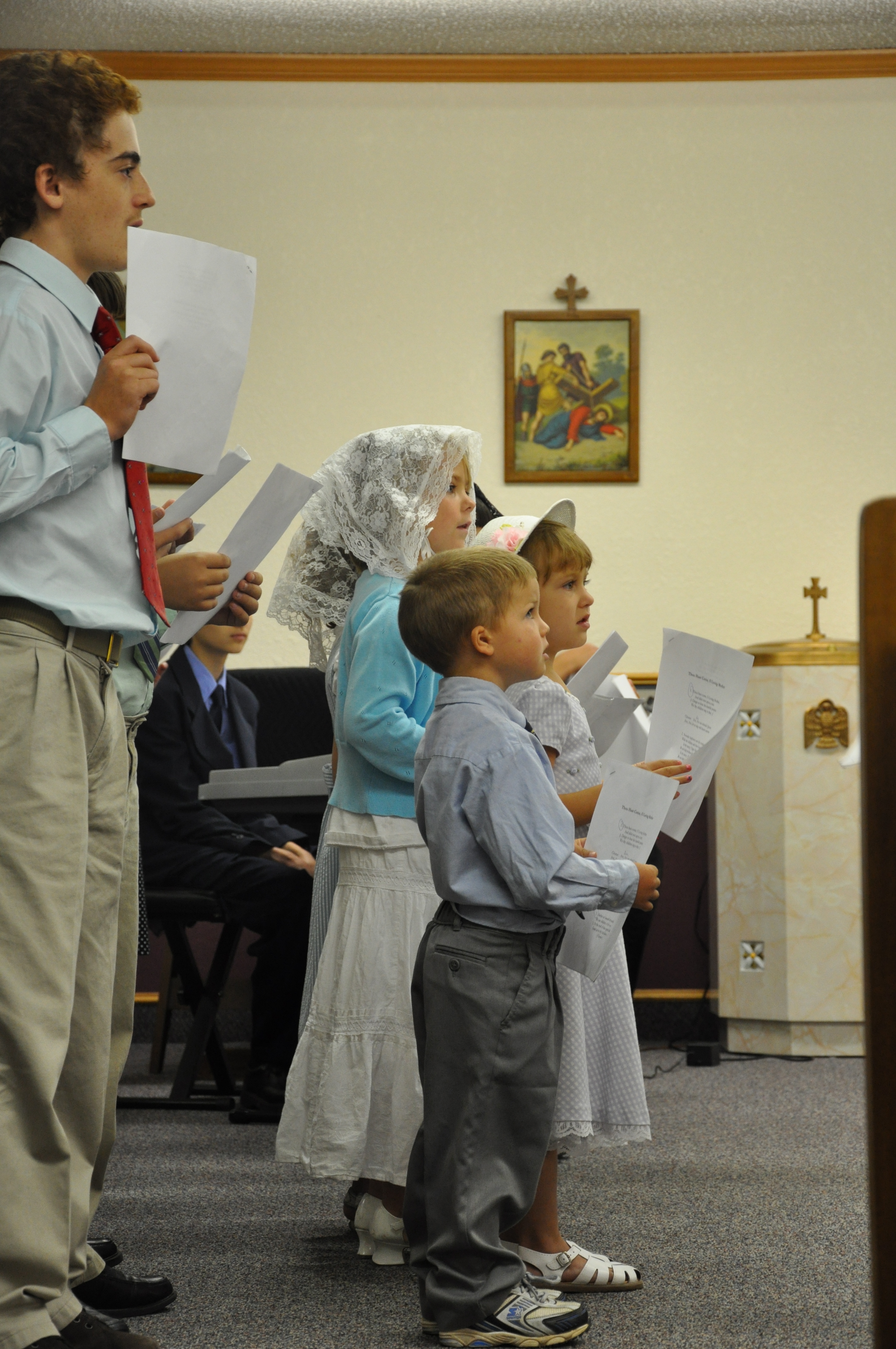 (Brendan's first children's choir. Yes he is in tennies. We could not find his good shoes before church. Shoes, the bane of my existence ; ))