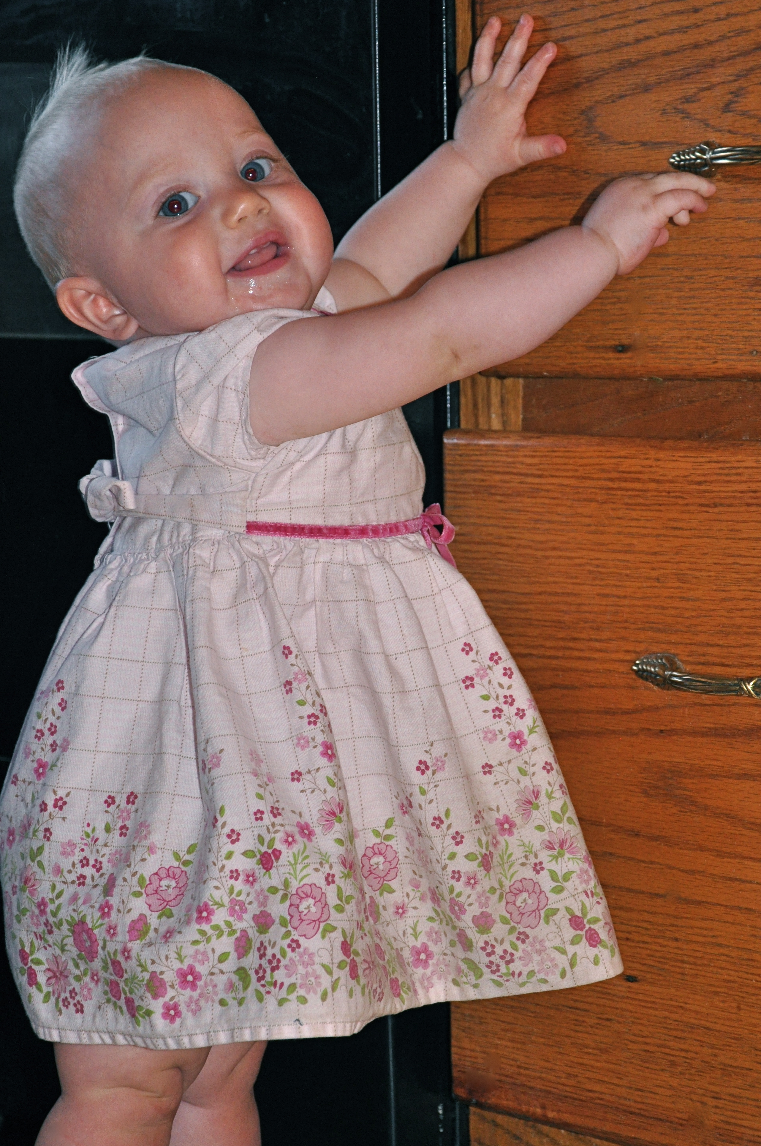 Abbie, Abbie, Abbie! You are a baby! Why do you think you must be upright as you begin 9 months and we begin school again? <g> And why did your mother not fix your red eye?