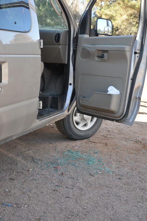 That would be my van. That would be my van minus the passenger window. And minus my purse. Hopefully not minus my identity. : / It was actually my babybag and was down on the floor between the seats. The family I was photographing had a purse in the van next to mine. No other vehicle on the lot had been touched that we could see. Again, the odds? Probably out there.