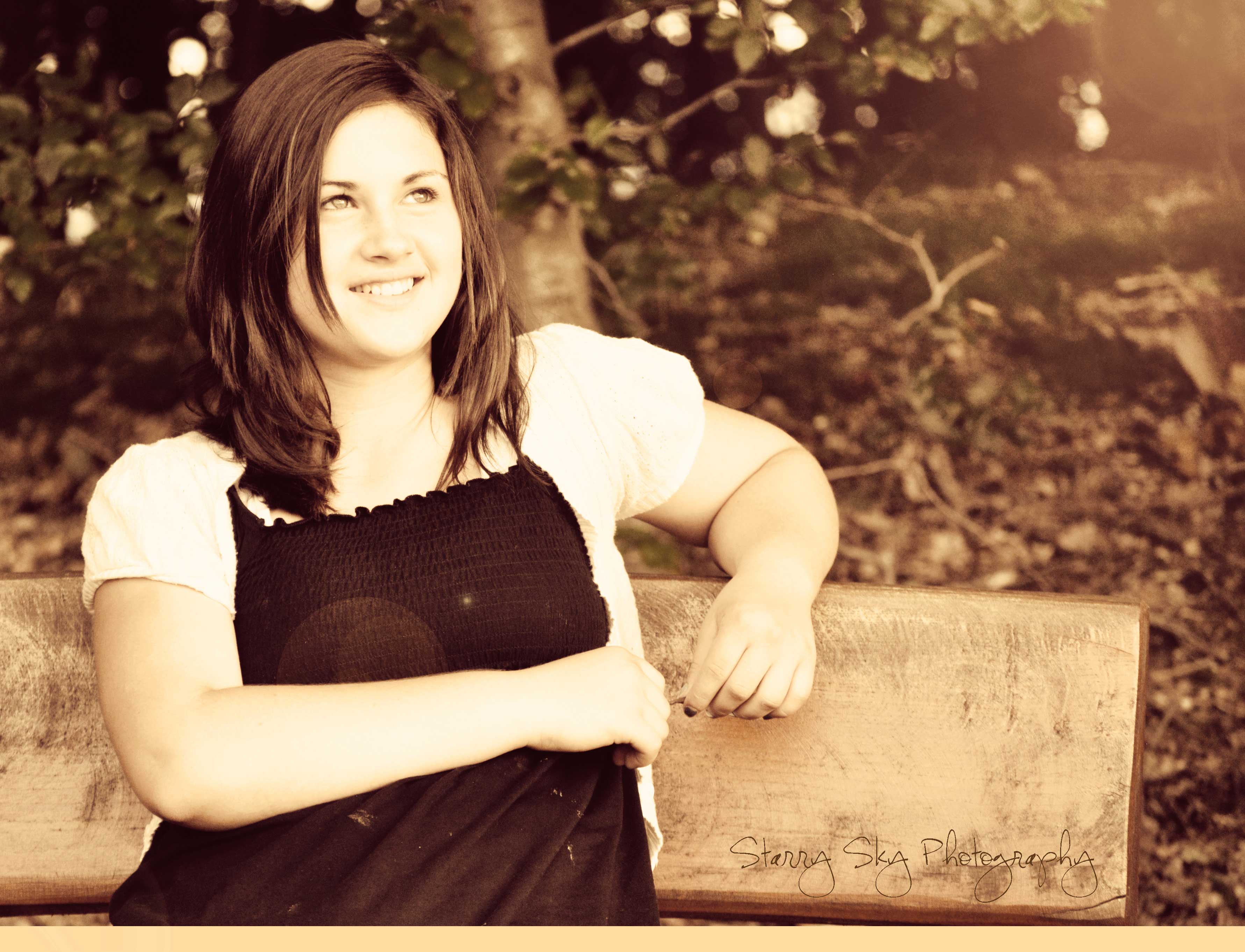 I am wearing… Boot cut denim trousers, wedge heeled sandals, heather brown car length sweater, brown chandelier earrings my oldest daughter chose for me this morning. I am mostly looking at Moira though, in her own similar trousers, the black tunic top and her hair pulled into a low knot secured by a large violet silk rose. I am certain I did not look that pulled together as a young teen.