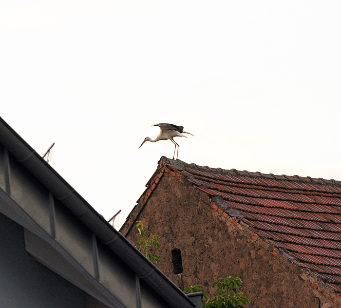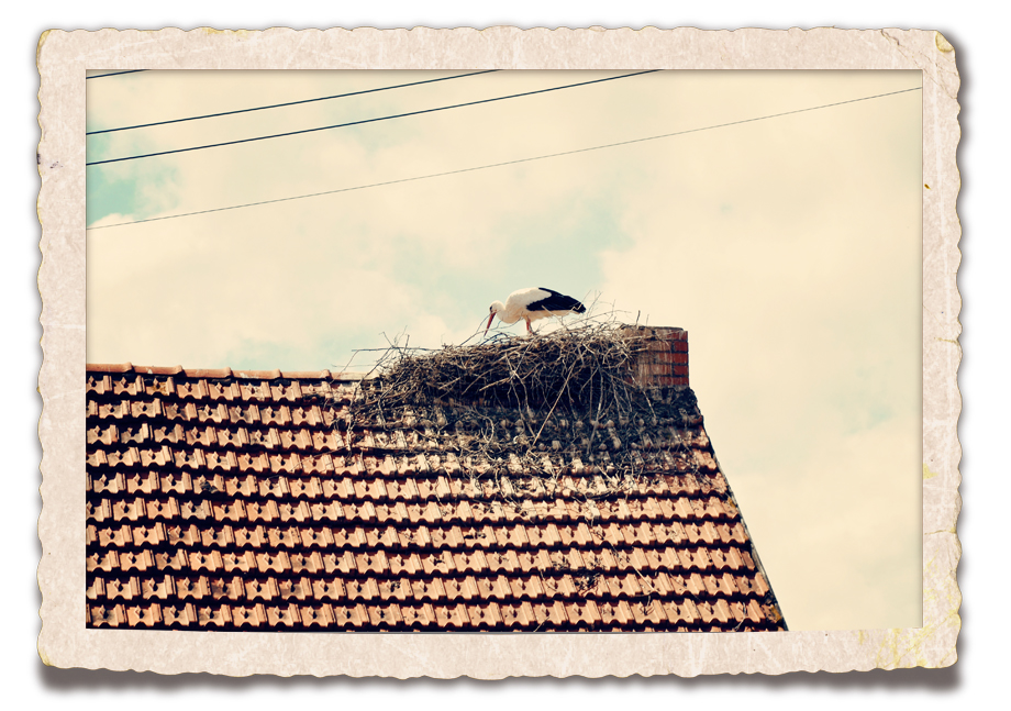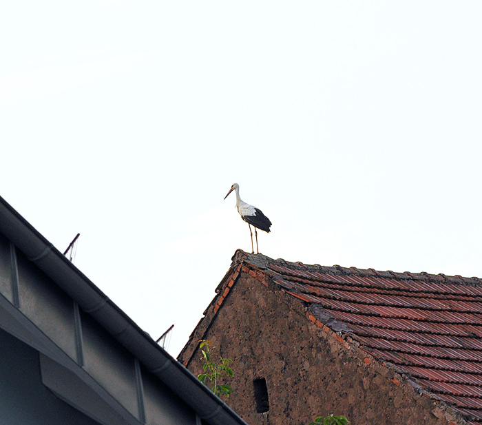 A few more storks were spotted poking around the meadow on the edge of town, but the nest was empty the next time we came through. We were lucky to catch this one at just the right time.