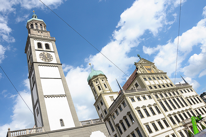 It was a bit of a painful pilgrimage, as I suppose all pilgrimages necessarily are. We had spent the better part of the day touring the Dachau Memorial and arrived in Augsburg to discover a festival in progress – right in the square before the church. That meant parking was not to be found. We circled further and further out and eventually parked in resident parking on a distant street (read: sorta illegally) and hiked up the hill as fast as we could.