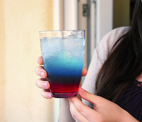 While looking for 4th of July recipes, I came across this drink idea. I knew from the moment I saw it that I had to try it. It does indeed work. Don't let the cranberry juice intimidate you, because if you get your measurements correct, it actually tastes quite good.
