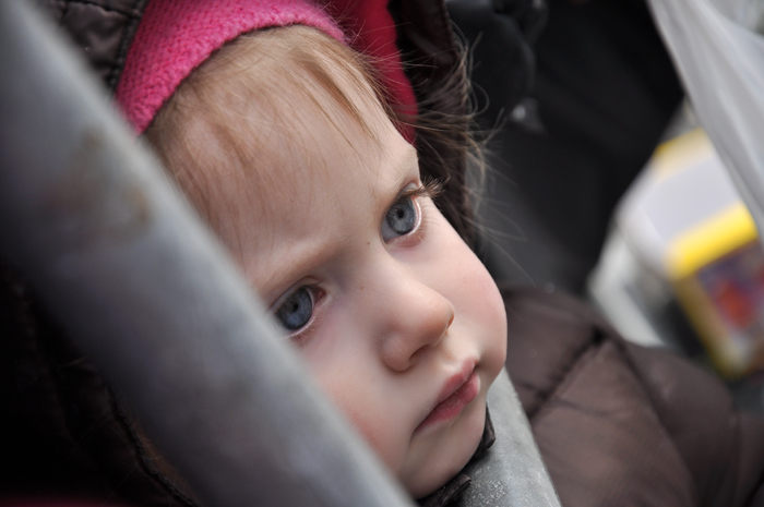 I am just going to interject here that the little people generally get dressed up cute when going out in public. But sometime in those last minutes before we get out the door Brendan usually reworks at least part of his outfit. Today it was his cold weather gear. So. Back to your regularly scheduled programming…