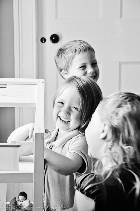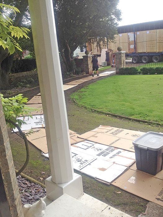 Ok just kidding. (But hey a pun lol! ; )) Yeah, I am a little punchy. That was the girls discovering the mail slot in the front door which they thought was quite cool. Bigger news was that today the movers arrived with our things. It was a very full day – the movers and we were begging for mercy tuckered out by 5pm after 8 or 9 straight hours of unloading. End result is that all the furniture is reassembled and set up in all the rooms and we are functional.