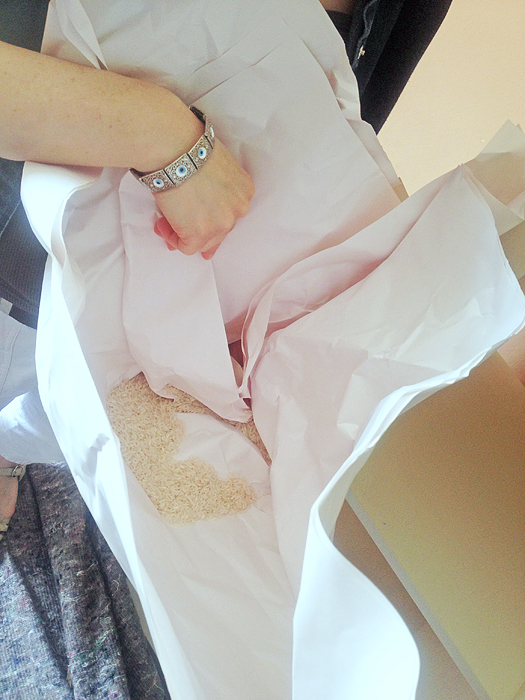 Speaking of which. Funniest thing I unpacked today? Rice. Like…… this paper wrapped handful of loose dry rice. Hello?