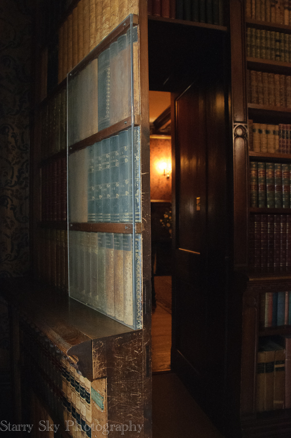 (above – one set of shelves in the library was actually a false door into the dining room)