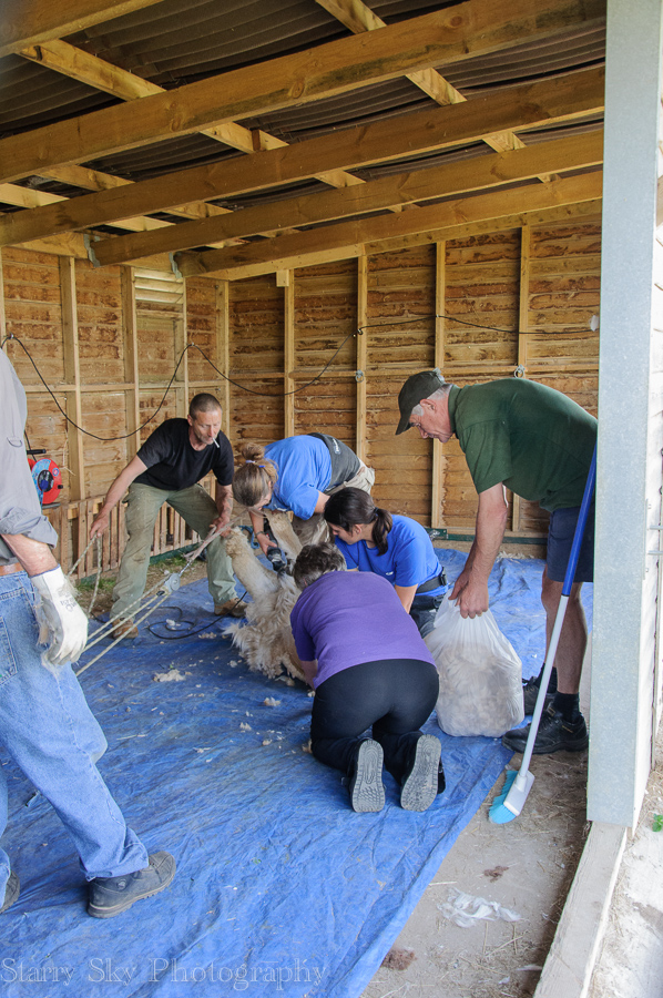 A friend let me ride along to watch the alpacas getting sheared at a local farm last week. The herd is part of a large complex that houses a preschool, herb gardens, and a fiber studio. I knew something about alpacas from our years in Colorado. It is not an inexpensive undertaking and great care must be taken to select, breed, and raise up the animals. Shearing too must be done professionally to save as much of the very dear fiber as possible.