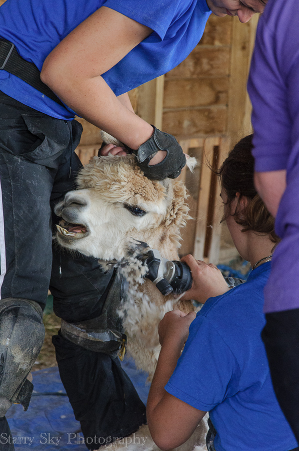 Fwiw, alpacas make a rather unearthly sound when they are unhappy and emerge from a shearing looking even more alien than before if possible. They did, however, take it all in stride. They made very little fuss and were off to pasture in no time.