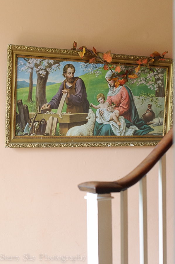 And I love your Holy Family on the wall! So beautiful and peaceful. I do love to buy those old ornate frames with the plaster on wood but I don’t have any with religious pictures. Such a lovely combination.