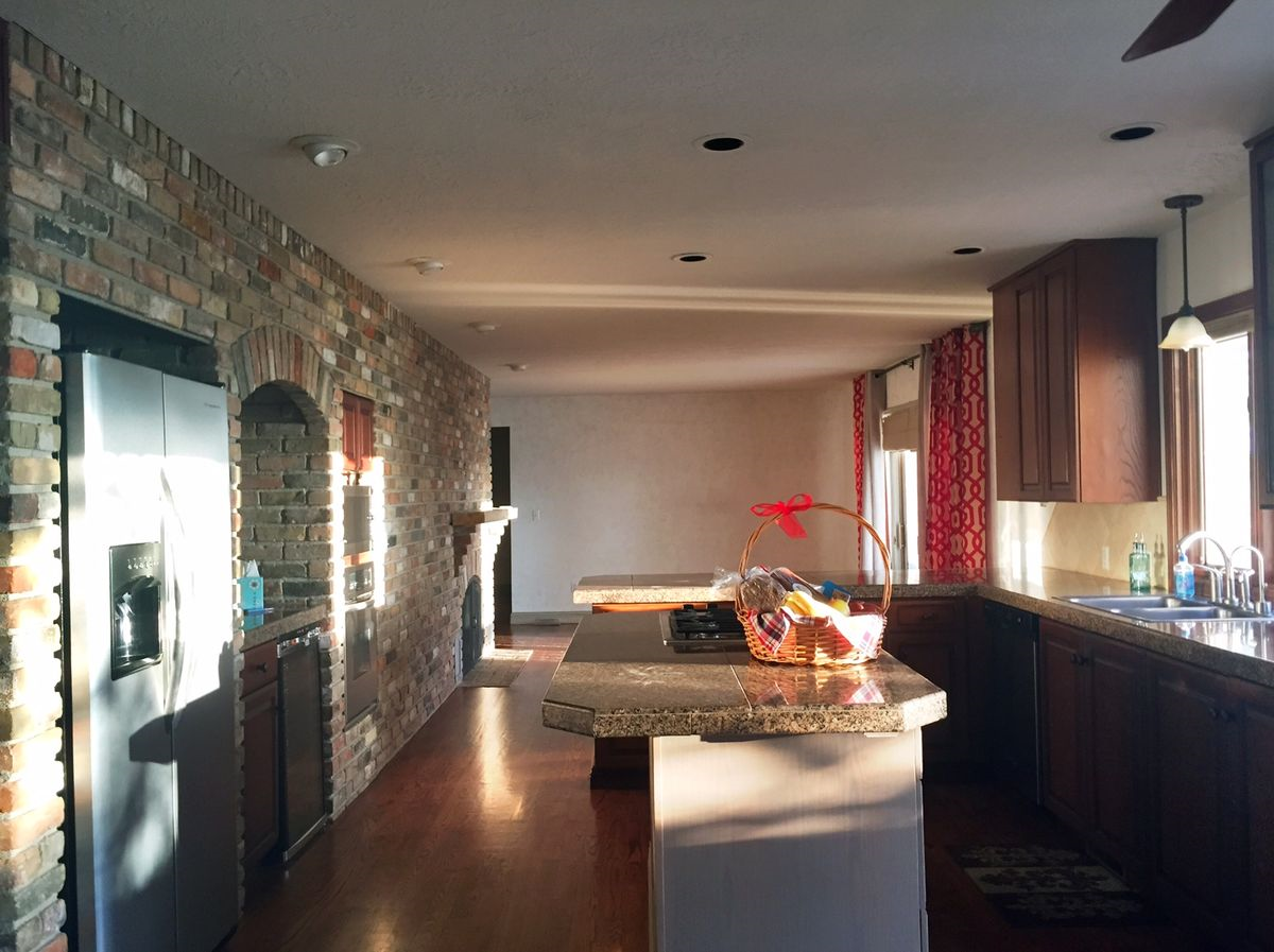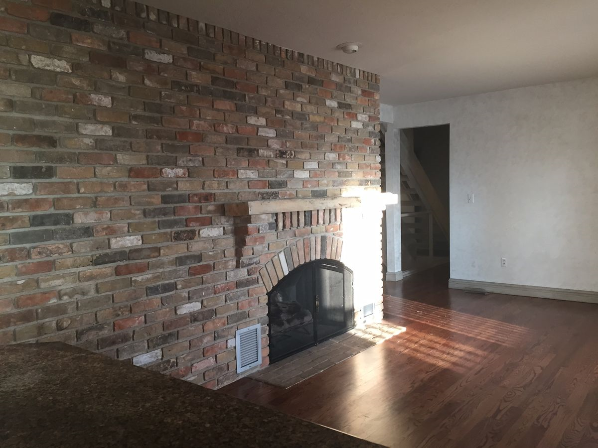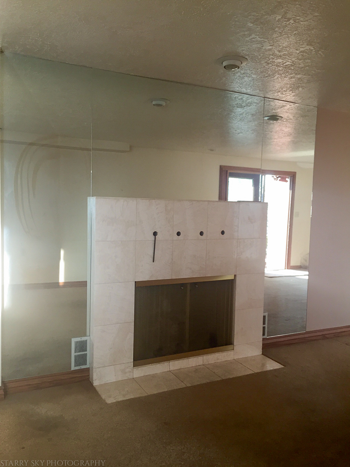 And the world's most awesome kitchen sits above possibly the world's most hideous family room fireplace. The 80's, people. It was not kind. As late as 2007 (per my resurrected reno mag) Better Homes and Gardens asserted that "a wall of mirrors reflects light and doubles the square footage of the room."