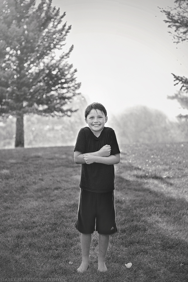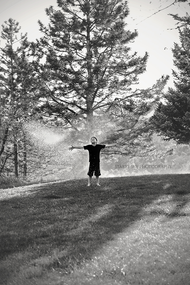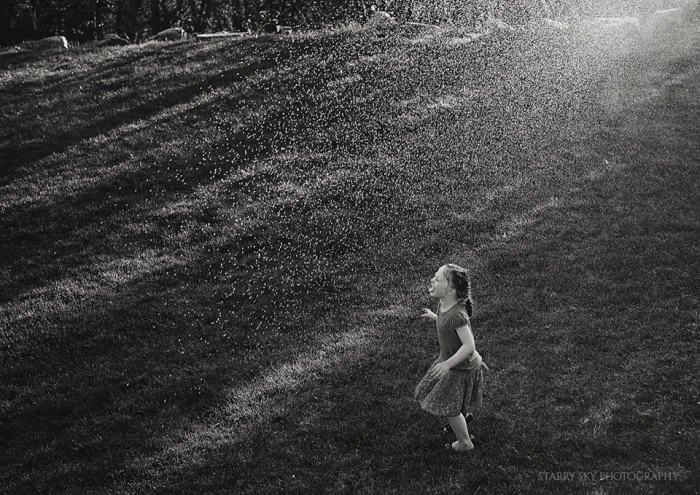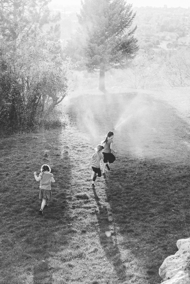 That evening when they were playing out back and discovered what time the sprinkler system was set to go off?