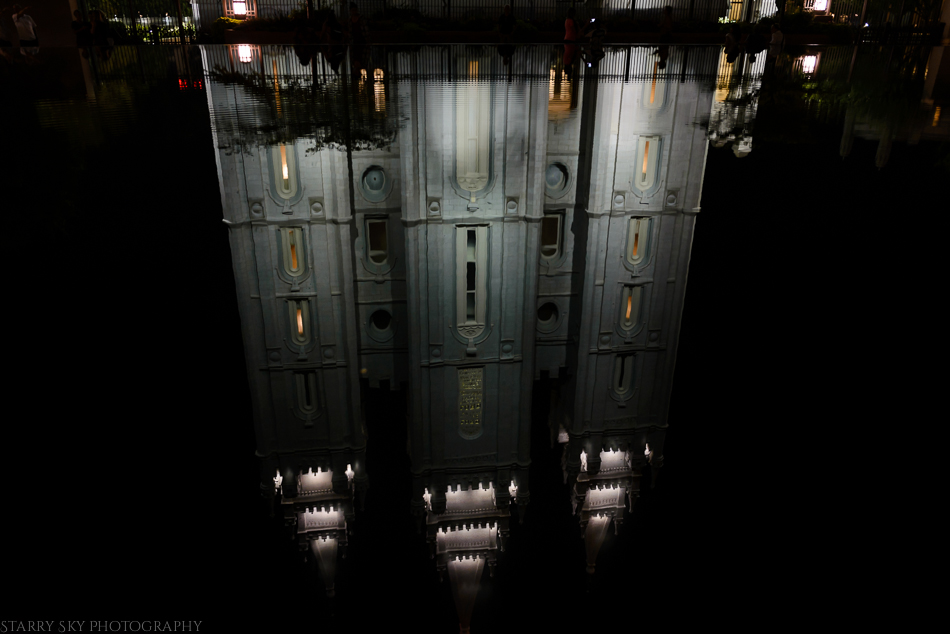 We stopped for dinner and then walked back to the van. It was absolutely ideal weather by then. Balmy without a hint of breeze. That meant the reflecting pool at Temple Square was able to do its job nicely. After waiting for it to settle again after a certain 10yo tossed a pebble in. ; D