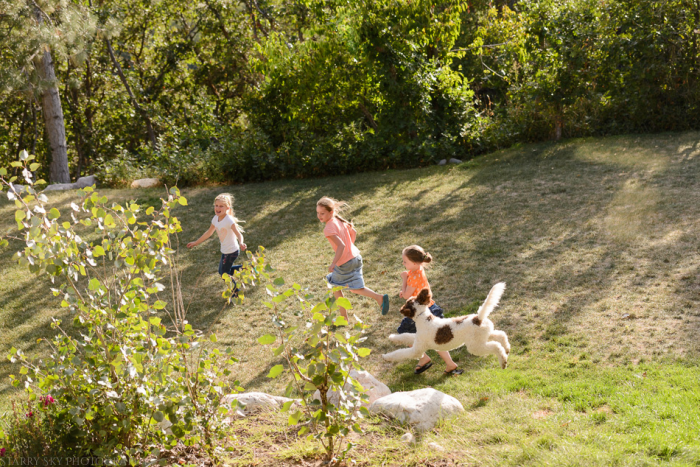 More often than not the doorbell will ring just after dinner and they will run around with the neighbor girl for "just a couple minutes please!" I asked if Archie could run with them instead of tipping the garbage can over while we do dishes. They say sure. He can be "it." Wanna bet who wins?