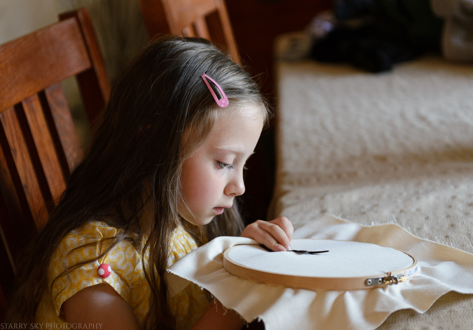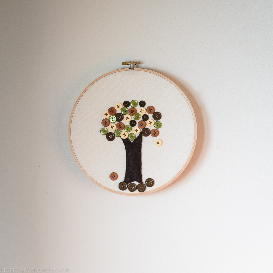 All finished. Our October project with the neighbor girl was button trees. They basted the felt trunk onto the cotton backing and then sewed the buttons on in criss-cross fashion.  The backs are not beautiful. They did not knot and restart each button because the stitching was doable and knots and rethreading was…not.  But hey, for 6, 7, and 8 year olds I was impressed.