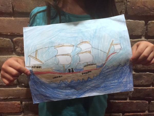 We finished up an experiment from Friday.  We sat and did some hand sewing.  (you will love!) Some of us drew along with this tutorial after our Columbus biography read aloud today.  I think my 6yo (below) is a gosh honest art prodigy.  But I digress.