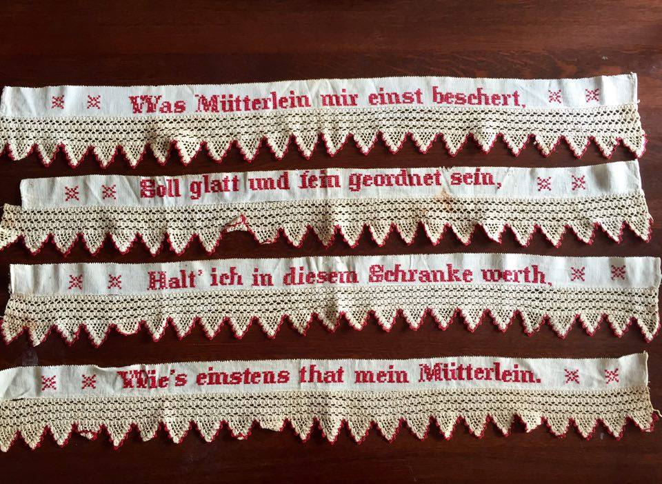 Around the house: I picked up this set of embroidered linens from the antique sale. There had been another similar set at the flea market in Germany which left me with serious reverse buyer's remorse when I left them there. Now they are here. My young German friend tells me they say: