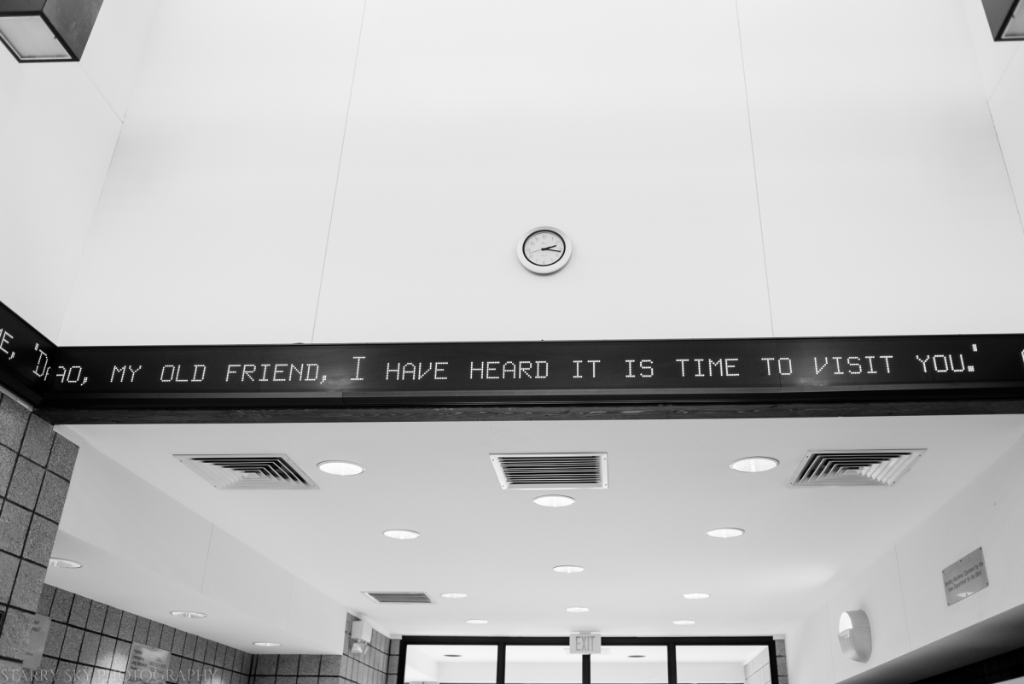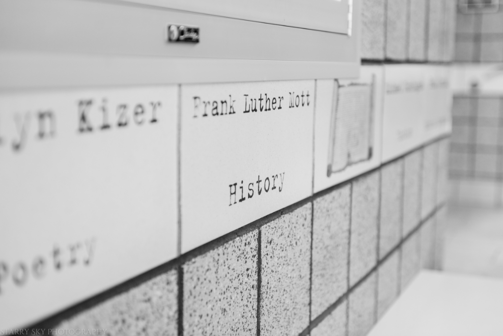 The restroom building was every bit as thoughtfully designed from the graphic signage to the Pulitzer plaques to the quotes on continuous feed trailing around the top of the atrium area. It was a feast of words and letters, history and ideas.