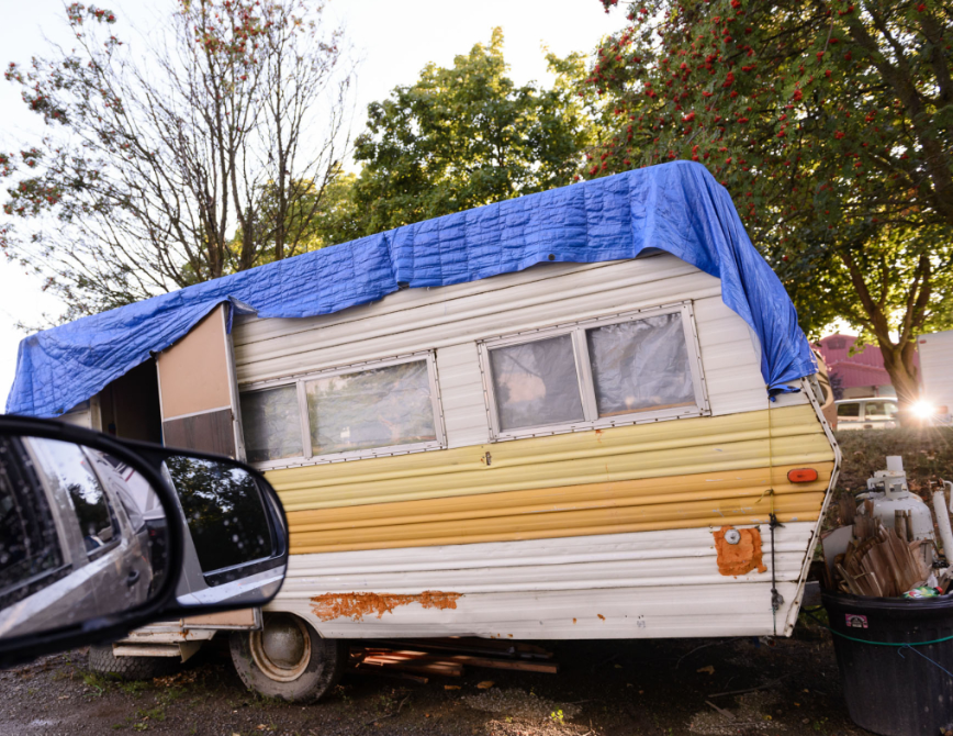 After passing trailer after trailer looking much like the above, we pulled into our spot and I began surfing for RV park crime and this park specifically. We found reviews which euphemistically mentioned that there "were a high percentage of permanent residents." Translation? It was a trailer park full of "residences" that hadn't been road-worthy in more than a decade and never would be. As the sun was beginning to set more people were arriving home in various states of undress and intoxication.