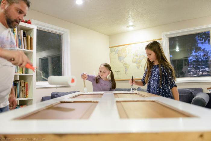 We got our toes wet beginning the main floor painting since we moved some large furniture into the space and didn't want to move it later if possible. It was a hair-pulling ordeal for me to find the perfect sand color. Who knew? We brought home a ridiculous number of samples (per my husband) and one after another had distinct undertones of yellow or gray. We finally settled on this: