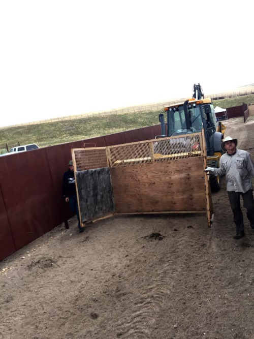 These bison are part of a large herd that roam the island. In the fall they open up these feeding corrals to entice them in. When the medical staff and volunteers arrive they begin the sorting process. A few at a time are moved down the narrowing path towards the chute with this "turkey chaser" tractor.