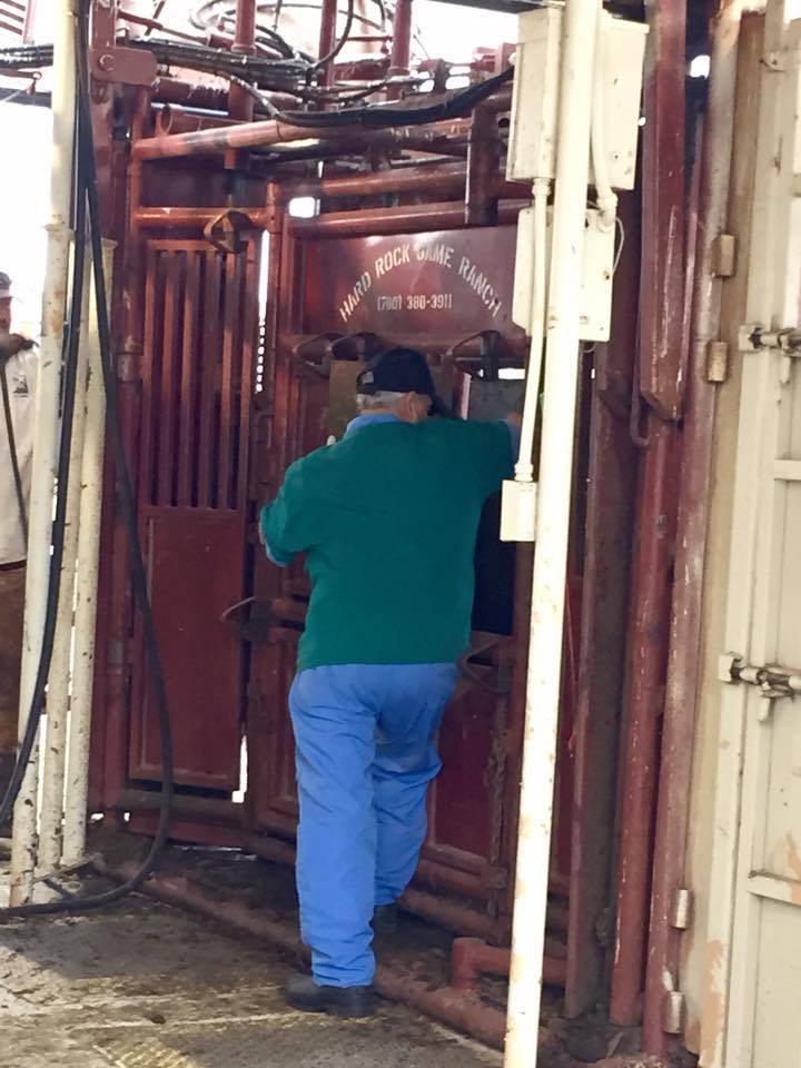 One by one they are shuttled into the chute where the vet scans their chips (microchips, not buffalo chips ; )), assesses breeding status, and administers shots or meds as needed. This all happens in about 90seconds. I am not exaggerating. They actually move them through in less than 2 minutes each.