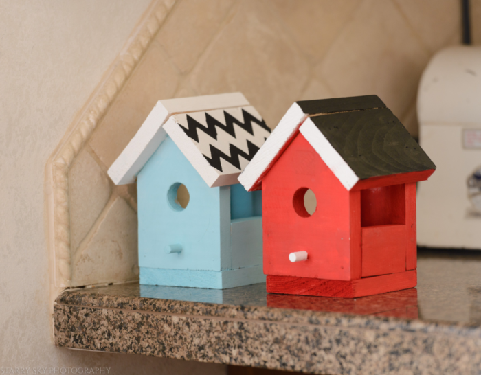 Creating: Birdhouses. It's been a slow project like many of our projects go BUT this one is nearly done. Just waiting for sealing now. The children picked up the Home Depot kits at the environmental field trip a few weeks ago. I came home one evening to find them hammering away with their dad outside. And Monday, we painted.