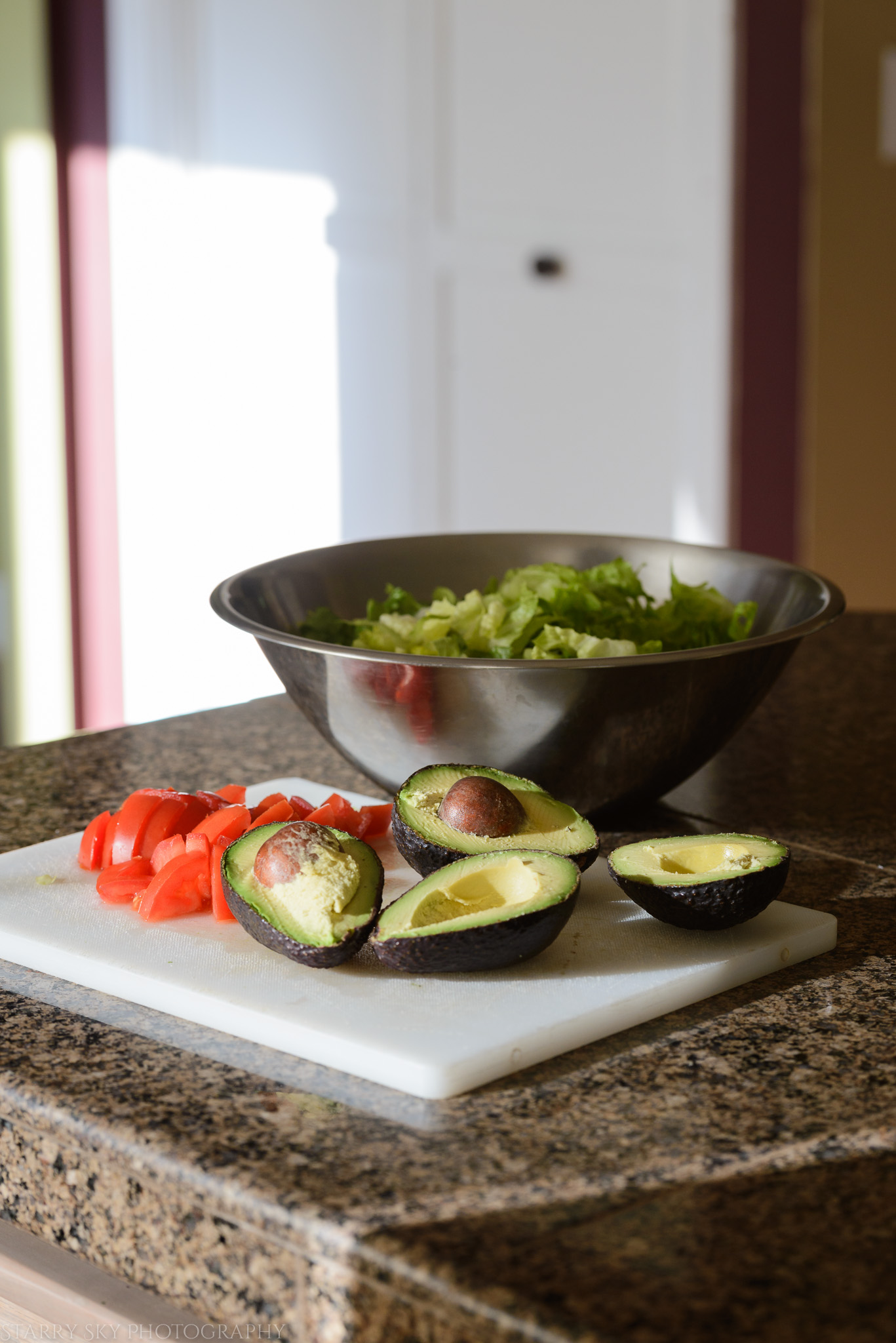 From the kitchen: lots of fresh food and grilled entrees are saving me right now. Chopped salads, roasted veggies, melons, and chicken or beef or sausages on the grill are staple dinners.