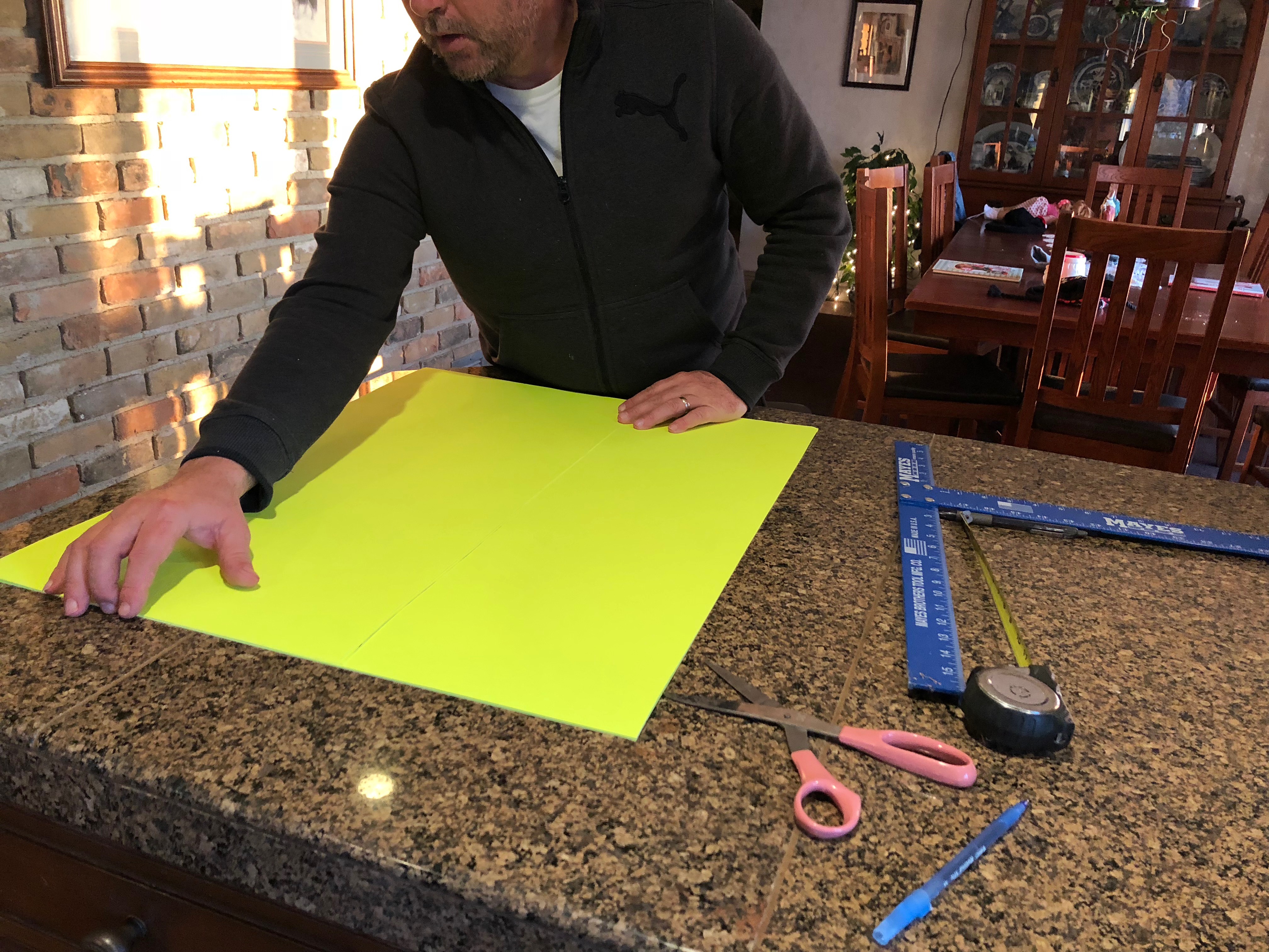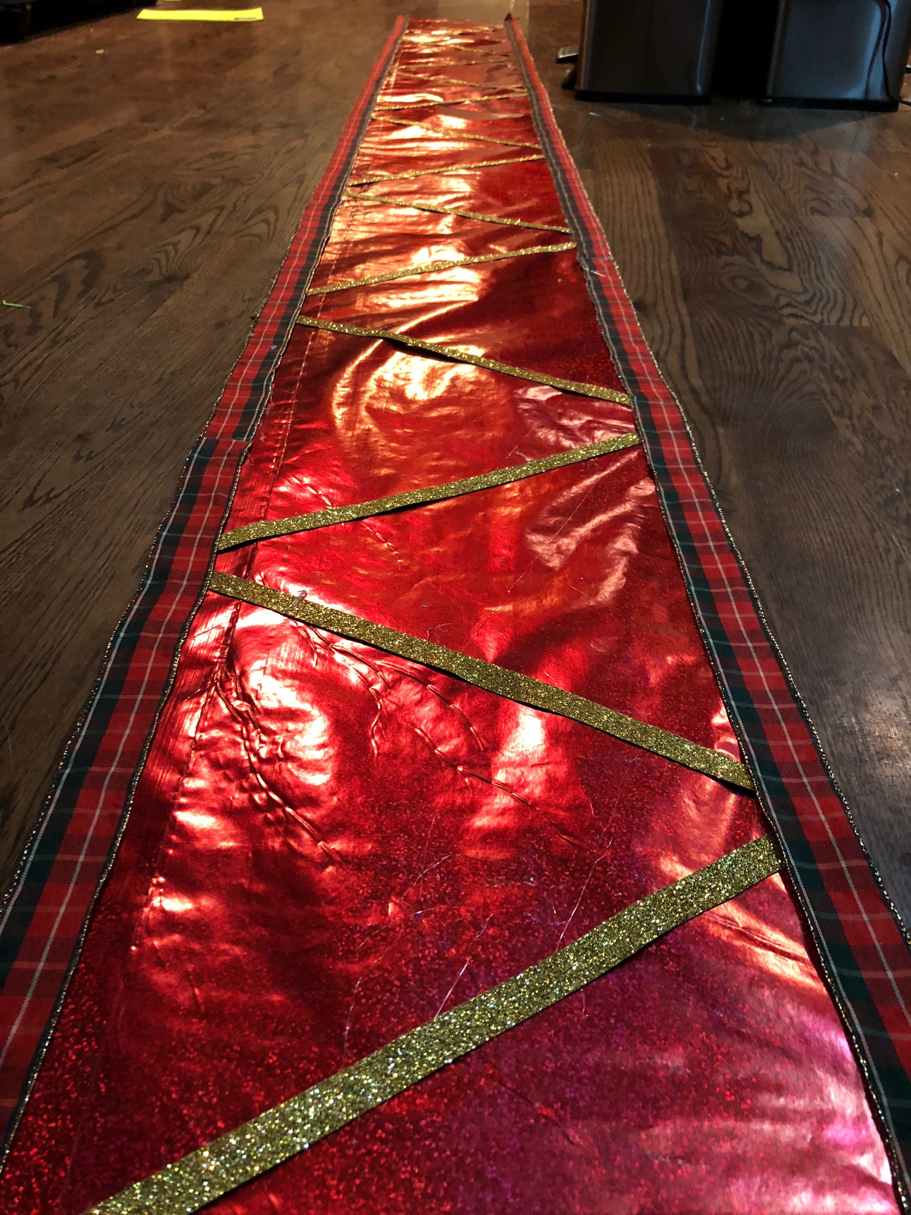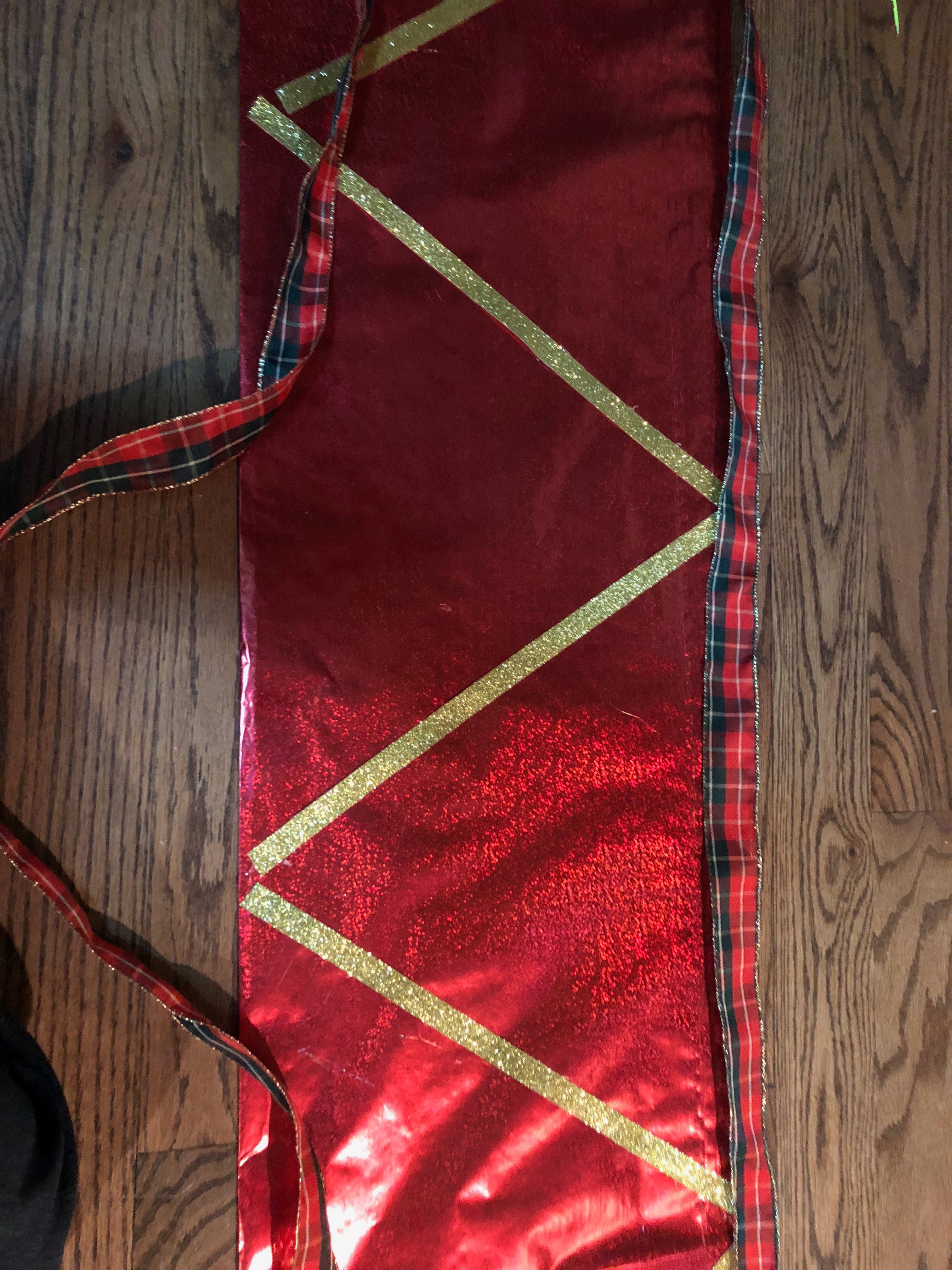 So now that you know what a tree geek I am, if you are still with me, here are some phone snaps of the tree collar process. I cut heavy posterboard to the desired height (floor to bottom of tree) and taped those together to get the circumference needed.