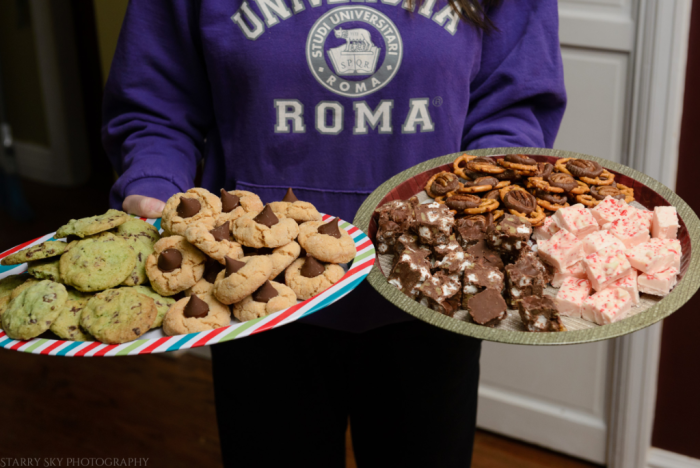 Alannah baked for us. I made one of the treats.  That would be the Andes Candies Mint Cookies which are a little brown lol.