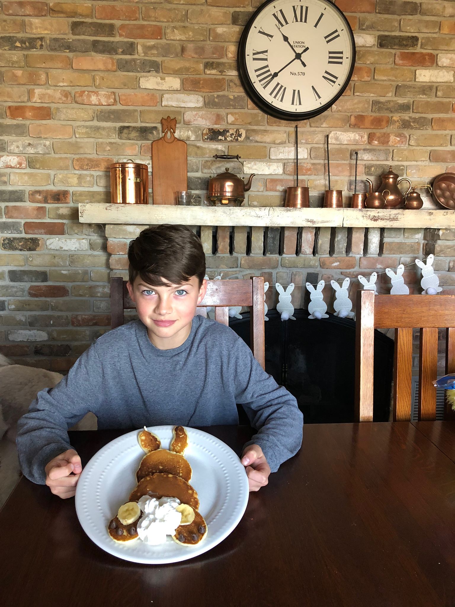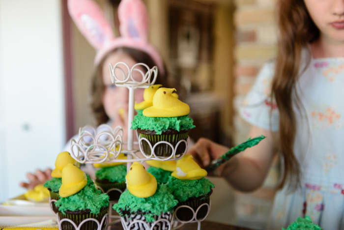From the kitchen: It was typically simple fare here. Our guest brought us some ham which I warmed with a brown sugar and mustard glaze. I roasted a couple chickens and toasted some rolls. The little girls made some peep cupcakes. The bunny pancakes made their appearance as always. That's the thing about traditions, they look forward to them with great expectation. It is different now that there are more able hands to assemble them all.