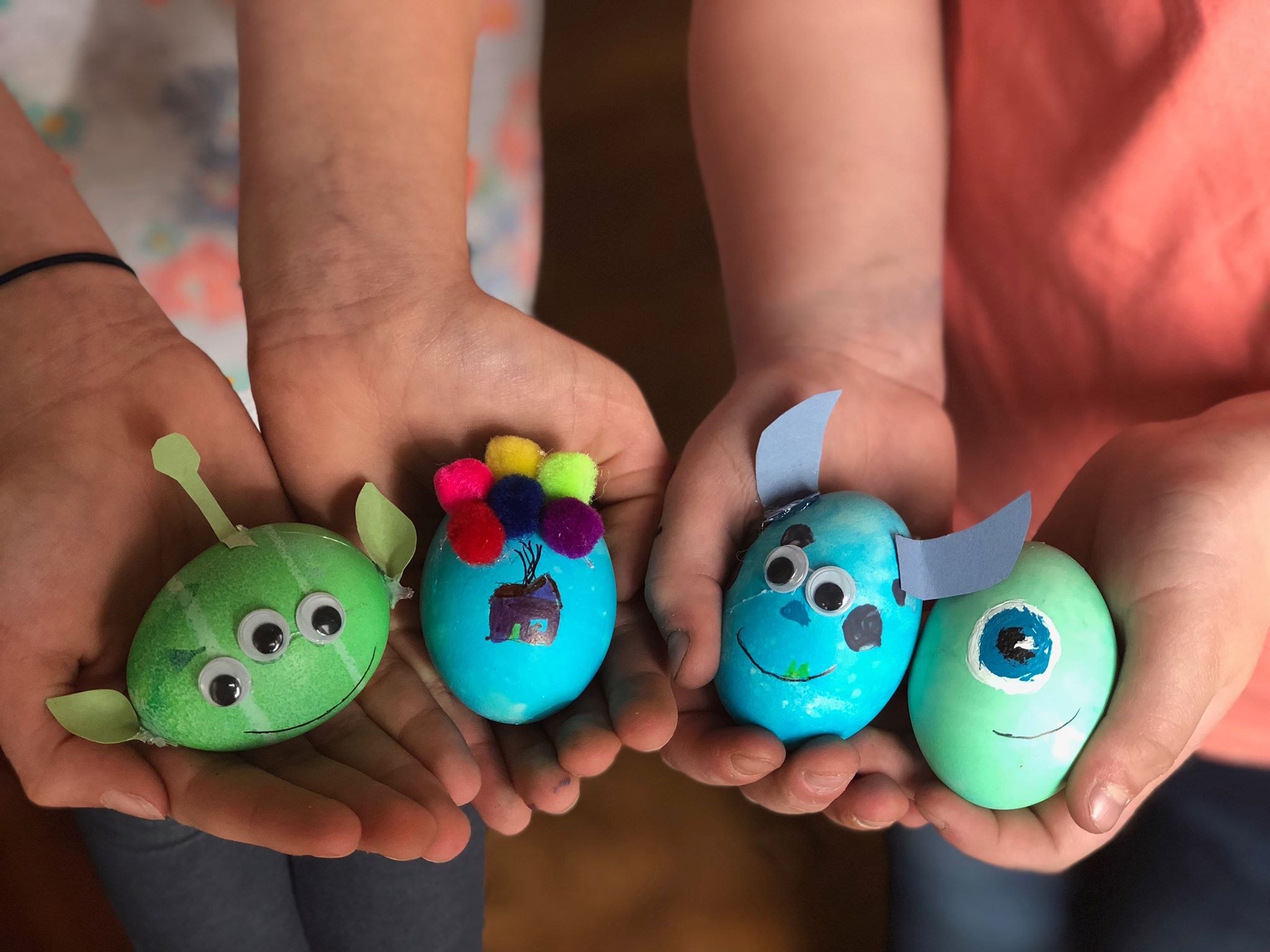 Creating: the crowning project, of all things, were the Pixar eggs. (below) I'm not sure what got into me lol. It involved paint and glue gun and I seriously questioned my sanity at one point a couple hours into it. Still, they were so very happy and busy and utterly thrilled when finished. They are not toddlers anymore and I know how soon the day will come they will not have hours to sit at my table and laugh and craft. It's a new season, couched between the chaos of preschool and the outside activity of the teen years that will soon be here for them. It's a good season.