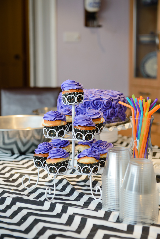 The Dollar Store had diner baskets and liners. Score! Premade packaged sliders, fries, and tiny Coke's were on the menu. Alannah mader her the soda shop cupcakes.